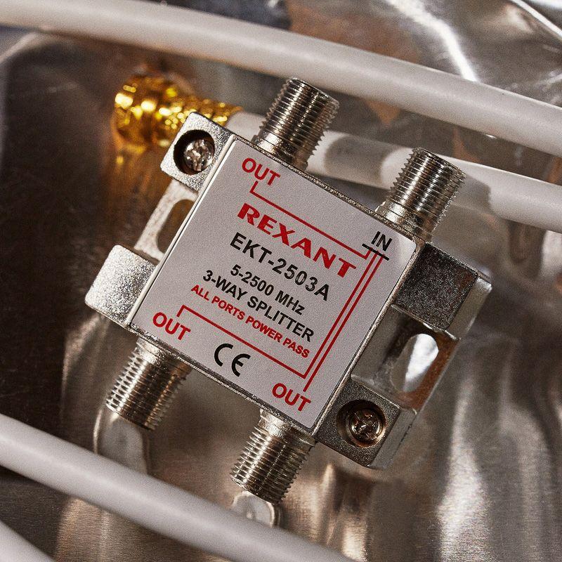 Телевизионный делитель СПУТНИК REXANT — это удобное средство для разделения сигнала на несколько равных частей. Применяется в случае, когда требуется подключить один телевизионный кабель, идущий от антенны, сразу к нескольким телевизорам. Особенно это актуально в многокомнатных квартирах или многокомнатных загородных домах.