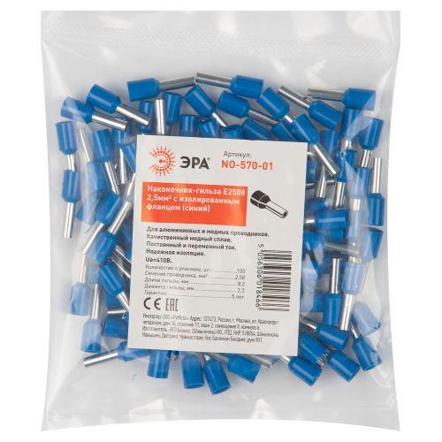 Наконечник-гильза Е2508 NO-570-01 2.5кв.мм с изолир. фланцем син. (уп.100шт) Эра Б0041455