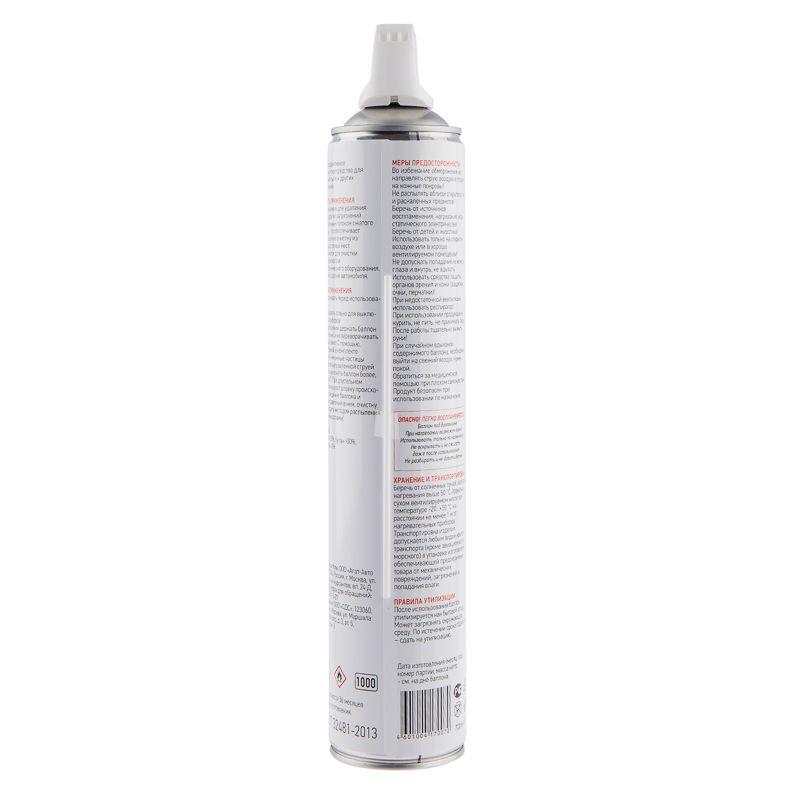 Пневматический очиститель DUST OFF REXANT предназначен для удаления пыли и других загрязнений направленным потоком сжатого воздуха. Разработан и рекомендуется для эффективной бесконтактной чистки чувствительного электронного оборудования и компонентов, устройств обработки данных, персональных компьютеров, экранов, дисплеев, оптических приборов, фотографических материалов, микроскопов и лабораторного оборудования. Используется везде, где необходимо удалить загрязнение и пыль, не оставляя следов, при этом исключая опасность испортить покрытие. С помощью прилагаемой в комплекте трубки мелкие частицы мусора сдуваются направленной струей газа. Пневматический очиститель является хорошей альтернативой очищающим средствам на основе растворителей. Распыляя очиститель, баллон следует держать вертикально. После многоразового или продолжительного применения необходимо дать баллону некоторое время для восстановления внутреннего давления. Во избежание обморожения частей тела не рекомендуется направлять струю сжатого газа н