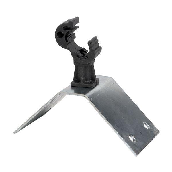 Держатель кровельный на конёк с пластиковым фиксатором фиксирует токоотвод 8–10 мм на коньке крыши. Высота крепления прута от конька равна 30 мм.