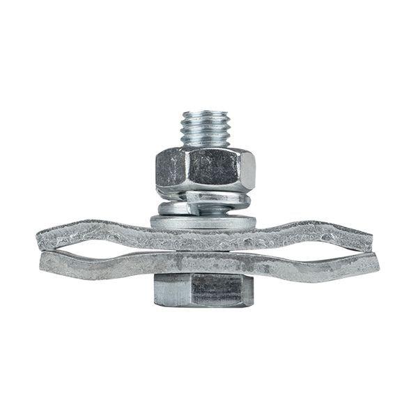 Зажим типа пс-2-1 предназначен для создания электрического соединения стальных проводов, спусков заземления, тросов молниезащиты. Контакт между проводами осуществляется прижимной пластиной. Имеет два болта для увеличения прижимного усилия. Зажим устойчив к ультрафиолетовому и солнечному излучению, высоким и низким температурам, коррозии и агрессивным атмосферным воздействиям.