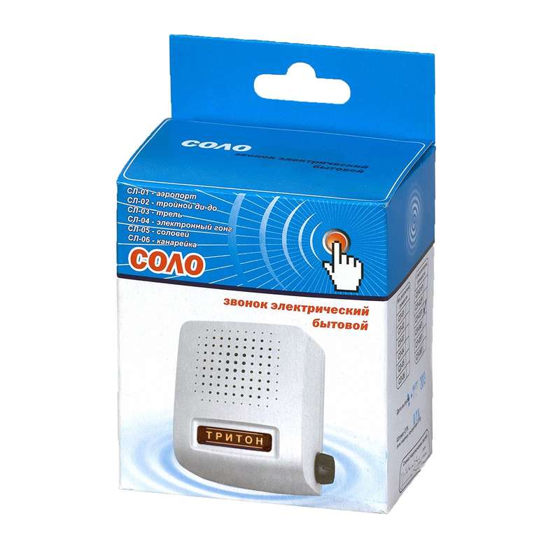 Звонок проводной Соло электрон. гонг регул. громкости 220В 80-90дБА бел. Тритон СЛ-04Р