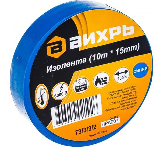 Изолента (10мх15мм) син. Вихрь 73/3/3/2