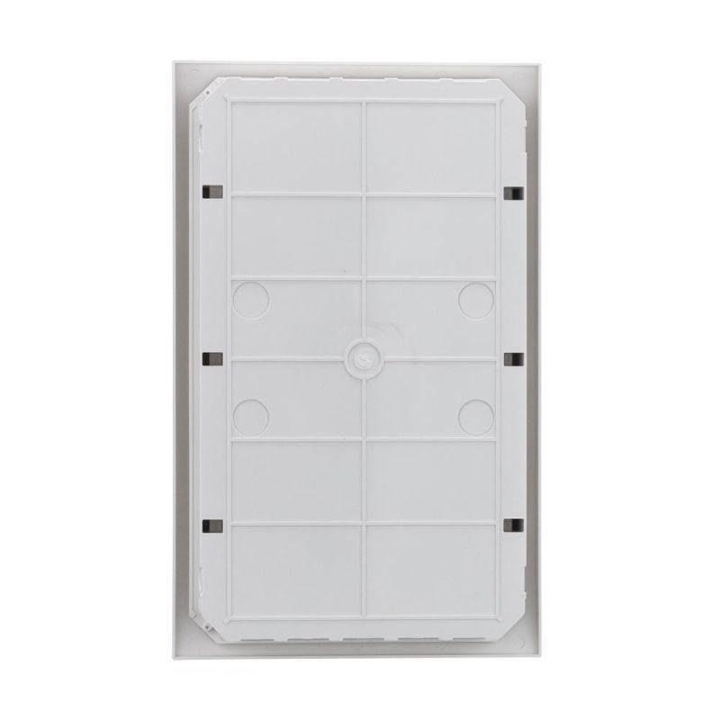 Корпус является встраиваемым, имеет 3 черных DIN-рейки и 36 модулей (18 мм) для установки устройств, изолированные держатели для шинок, шинки N и PE. Дверцы на каждый ряд фиксируются в верхнем положении. Щиток на 100% совместим с модульным оборудованием Dekraft и Systeme Electric.
