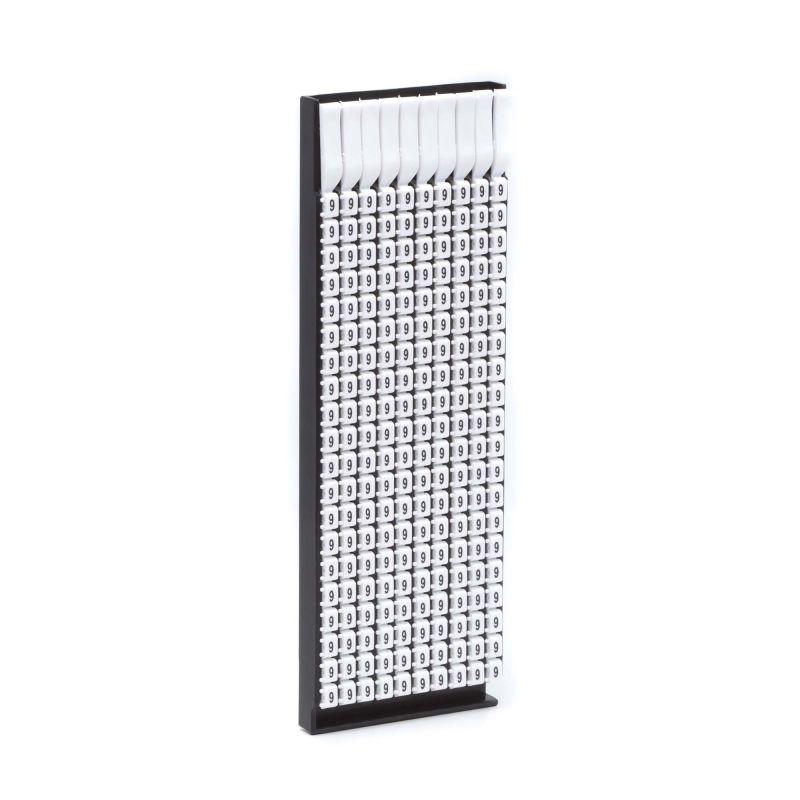 Ручная маркировка системы MARK 3 для маркировки проводов без разъединения электрической цепи из полиамида 6.6. Температура эксплуатации от –40 до +100 °С. Боковые штифты надежно фиксируют соединение друг с другом и позволяют добиться точного выравнивания маркеров. Цвет маркеров соответствует международной кодировке. Символ “9” черным цветом на белом маркере для сечения провода 0.5-1.5 мм2. 200 маркеров в упаковке.