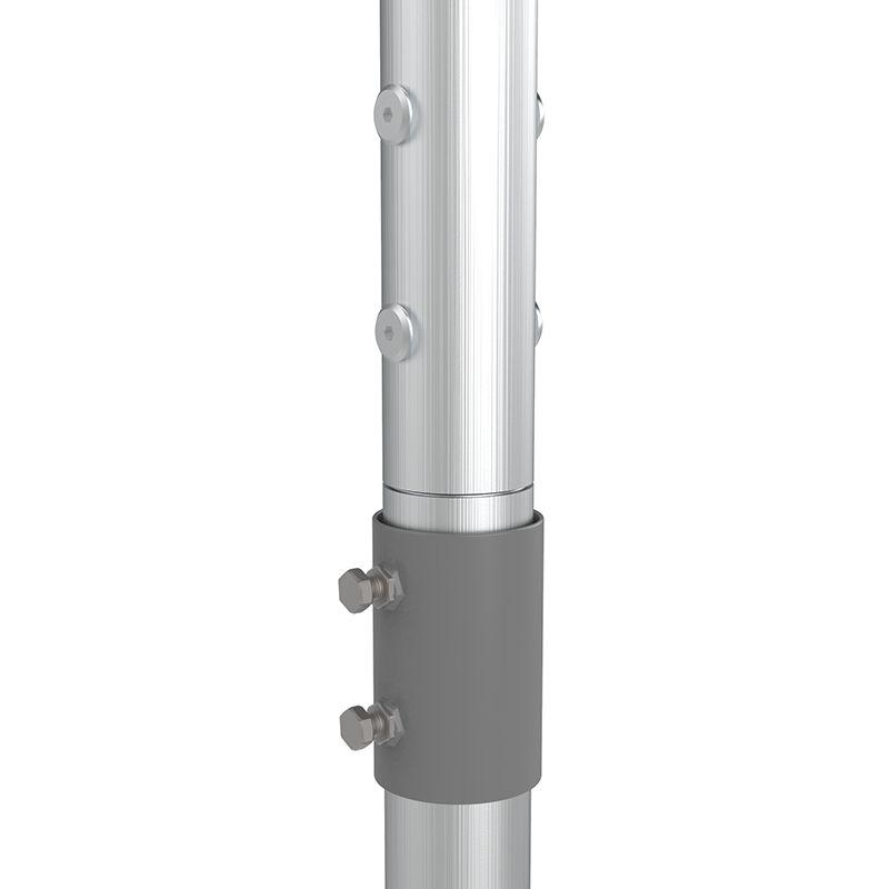 Мачта изготовлена из алюминия, что значительно уменьшает вес изделия. Облегченная конструкция упрощает транспортировку и монтаж, а также снижает нагрузку на поверхность крепления мачты.
