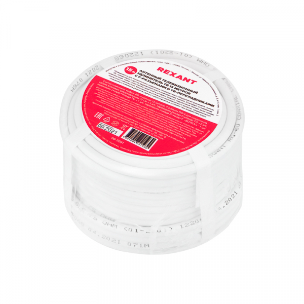 Набор с антенным телевизионным удлинителем для ТВ длиной 15 метров с F-разъемами и ТВ-переходниками REXANT 06-3091