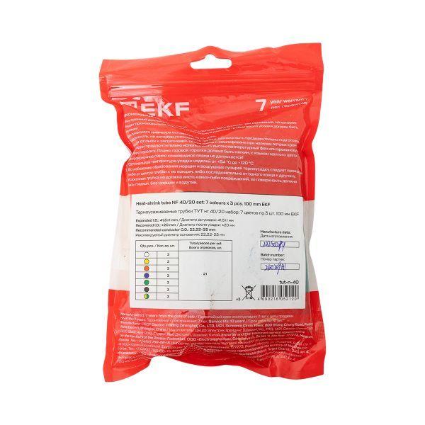 Набор трубок термоусадочных ТУТ нг тонкостен. 40/20 (7 цветов по 3шт 100мм) EKF tut-n-40