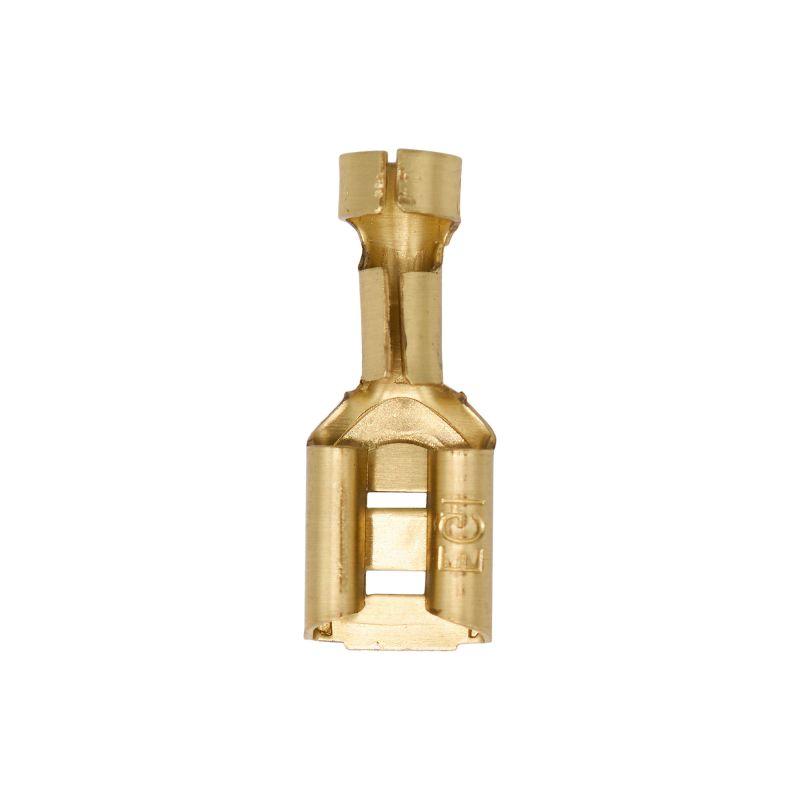 Неизолированный наконечник быстрого соединения (контактный разъем – розетка) предназначен для оконцевания предварительно зачищенных от изоляции медных или алюминиевых проводов и их присоединения к медным клеммам, шинам, зажимам. Материал контактной части – латунь. Сечение провода – 1.5–2.5 мм2.