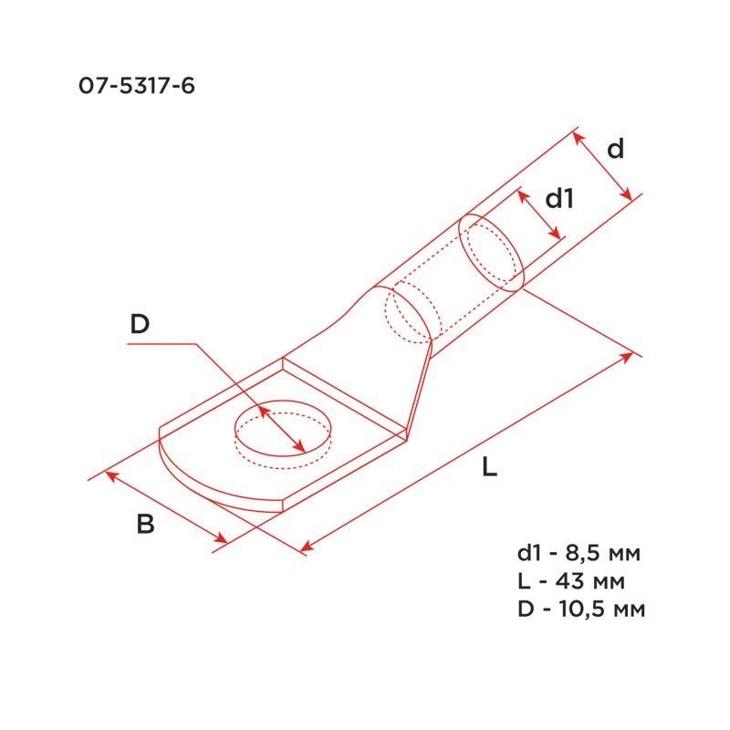 Наконечник ТМЛ-Р 35–10 (35мм2 – O10мм) REXANT предназначен для оконцевания проводов и кабелей с медными и алюминиевыми жилами посредством опрессовки для последующего болтового соединения проводника с оборудованием или шиной.
