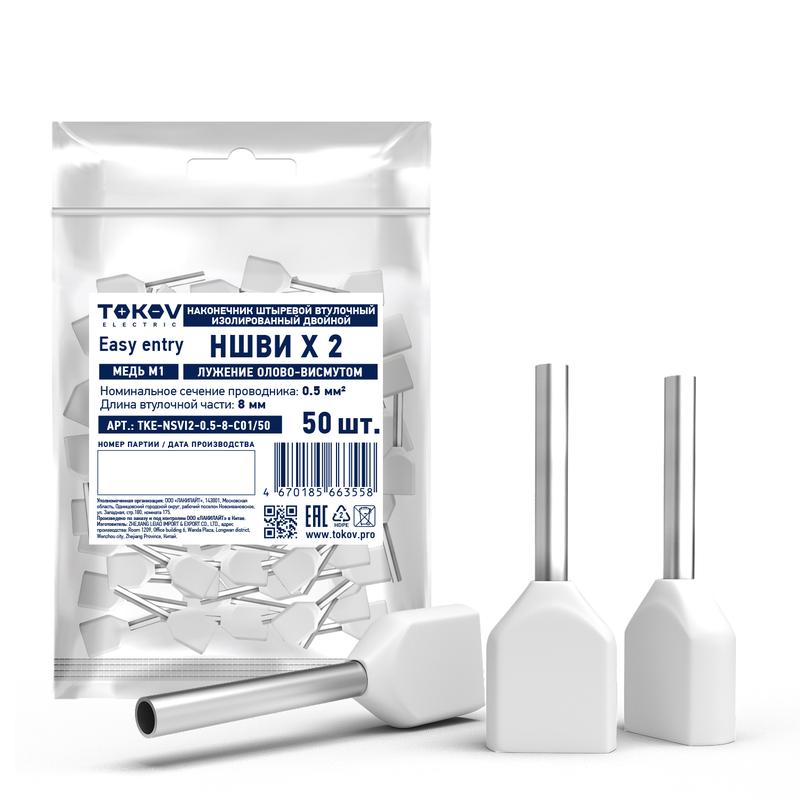 Наконечник штыревой втулочный изолированный двойн. НШВИ(2) 0.5-8 TOKOV ELECTRIC TKE-NSVI2-0.5-8-C01/50