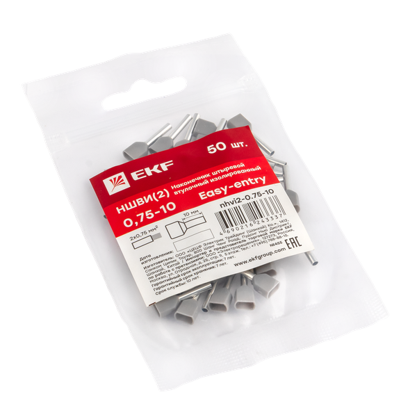 Наконечник штыревой втулочный НШвИ(2) 0.75-10 (уп.50шт) EKF nhvi2-0.75-10