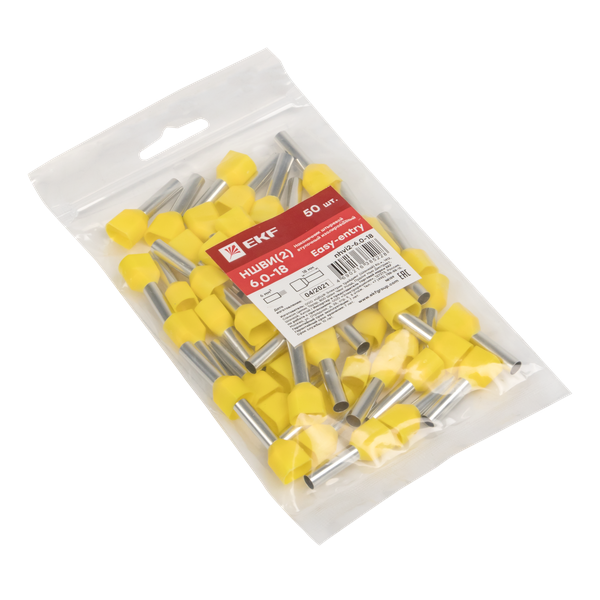 Одинарные и двойные втулочные наконечники (НШвИ и НШвИ2) EKF PROxima являются единственными специально разработанными наконечниками под опрессовку, которые полностью заменяют обязательный процесс облуживания многопроволочных медных проводов (типа ПВ-3, ПВС и т.п.) при монтаже различного электрооборудования. Втулочные наконечники состоят из медной луженой трубки, один конец которой развальцован для облегчения ввода многожильного провода и изолирующей манжеты из полипропилена.