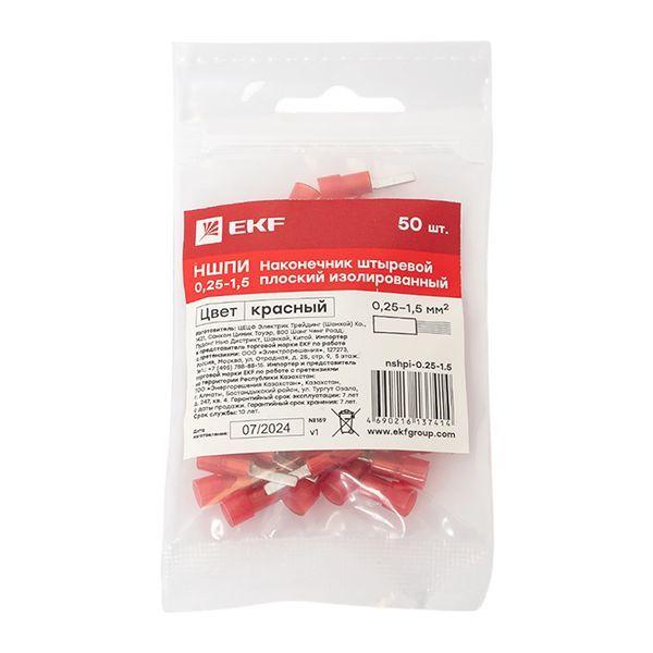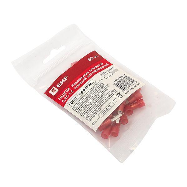 Наконечник штыревой плоский изолированный НШПИ 0.25-1.5 (уп.50шт) EKF nshpi-0.25-1.5