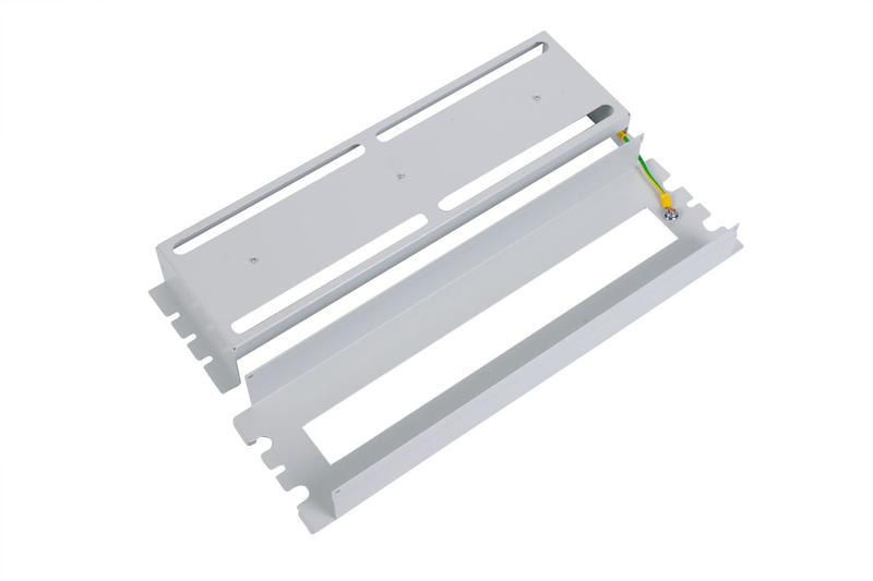 Панель для установки электротехнического оборудования по DIN 43880. Имеет металлический корпус со съемной передней крышкой. В задней части панели предусмотрены четыре кабельных ввода – 200х15мм. Максимальное количество устанавливаемых модулей типа S (ширина 17,5 мм) – 22 шт. Панель совместима со всеми линейками 19′ оборудования. Поставляется в индивидуальной упаковке. Цвет – RAL 7035 светло-серый.