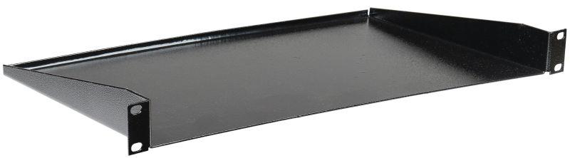 Консольные полки рассчитаны на размещение небольшого по габаритам и общей массе оборудования. Конструкция данных полок рассчитана на крепление полки только на одной паре монтажных профилей, спереди или сзади, и может быть как с перфорацией для лучшего охлаждения и отведения горячего воздуха, так и без нее.