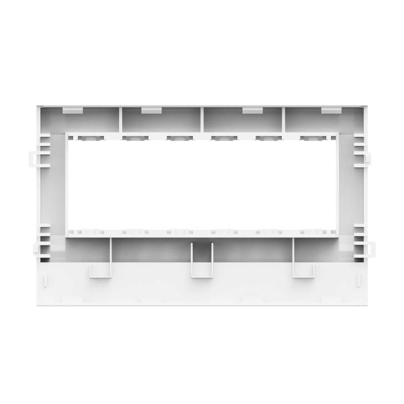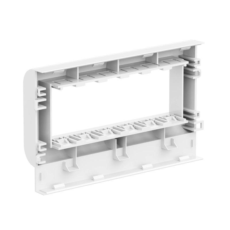 Рамка-суппорт на 6 модулей, PDA-3BN. Назначение: организация рабочих мест – монтаж электроустановочных изделий в пластиковые короба, тип TA-GN серии “In-liner Classic”. Монтаж: монтаж суппорта внутри короба с помощью защелкивания, монтаж электроустановочных изделий в рамку – защелкиванием снаружи. Характеристики: материал – АБС-пластик и поликарбонат. Комплектация: рамка; суппорт. Типоразмер короба: 100х40, 100х60, 100х80. Цвет: белый