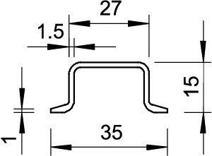 Монтажная рейка 35 х 15 мм согласно DIN EN 60715 (ранее DIN EN 50045), но с толщиной материала 1,5 мм.