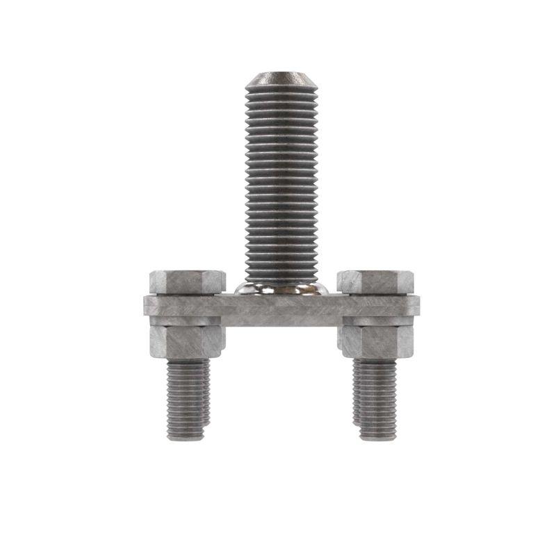 Соединитель применяется для подключения круглого (8-10 мм) либо плоского (25 мм) проводника к молнеприемному стержню. Соединитель устанавливается в бетонное основание путем ввинчивания. Диаметр резьбы – 16 мм. Материал – горячеоцинкованная сталь.