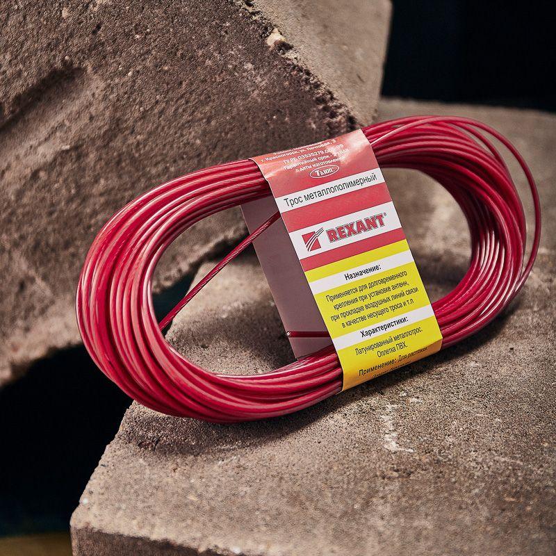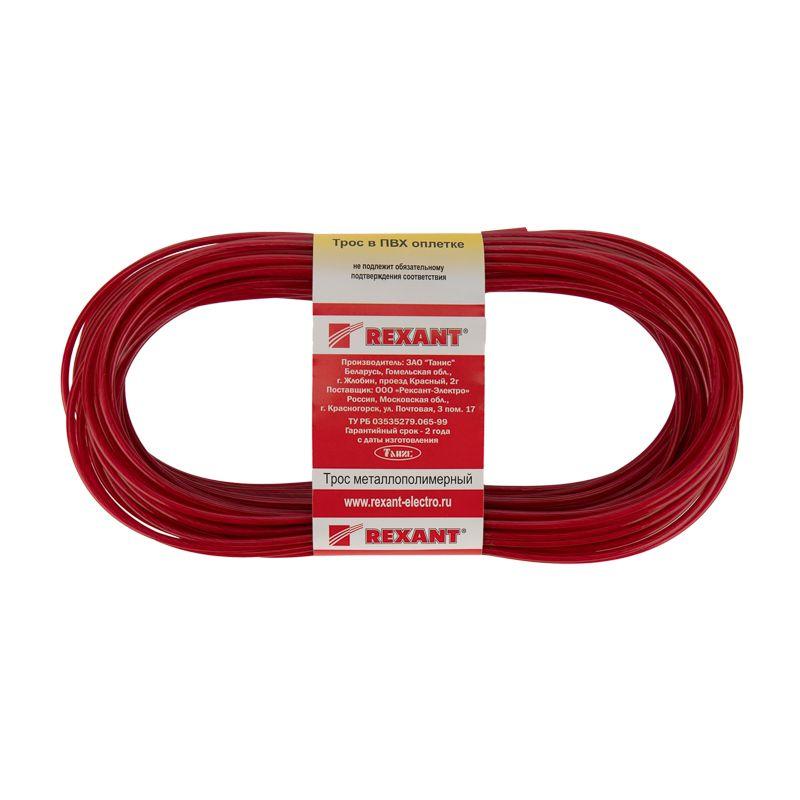 Трос стальной в ПВХ изоляции d2.5мм (уп.20м) красн. REXANT 09-5125-1