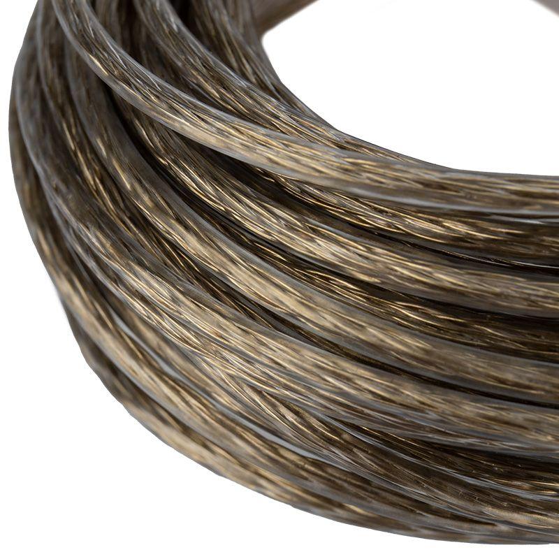 Стальной трос свивается из высокоуглеродистой латунированной стальной проволоки и покрывается ПВХ, что обеспечивает устойчивость к воздействию влаги и пресной воды. ПВХ покрытие является экологически чистым и абсолютно безопасным материалом для человека и животных.
