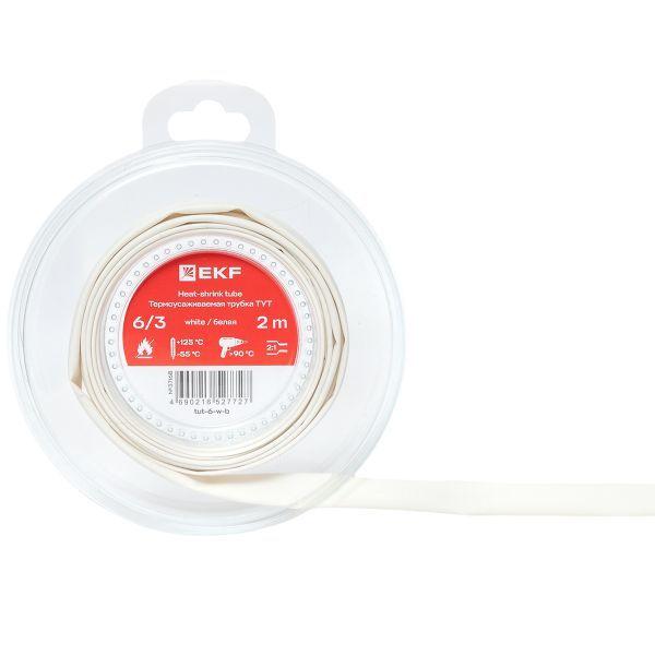 Трубка термоусадочная ТУТ нг 6/3 бел. ролик 2 м EKF tut-6-w-b