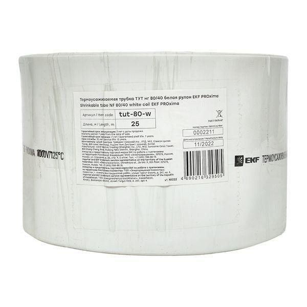 Трубка термоусадочная ТУТ нг 80/40 бел. PROxima (уп.25м) EKF tut-80-w