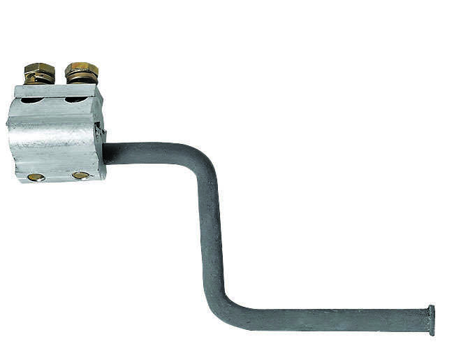 Устройство защиты от дуги НИЛЕД CE 3 13402332 состоит из прокалывающего ответвительного зажима и рога, дважды сгибающегося под углом 90 градусов, с утолщением на конце. Устройство СЕ 3 адаптировано для подключения переносных штанг заземления. Конструкция рога исключает возможность соскальзывания с него переносной штанги заземления.