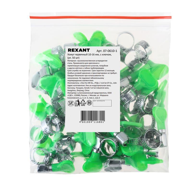 Хомут стальной червячный 10-16 с ключом W (Россия) Rexant 07-0610-1