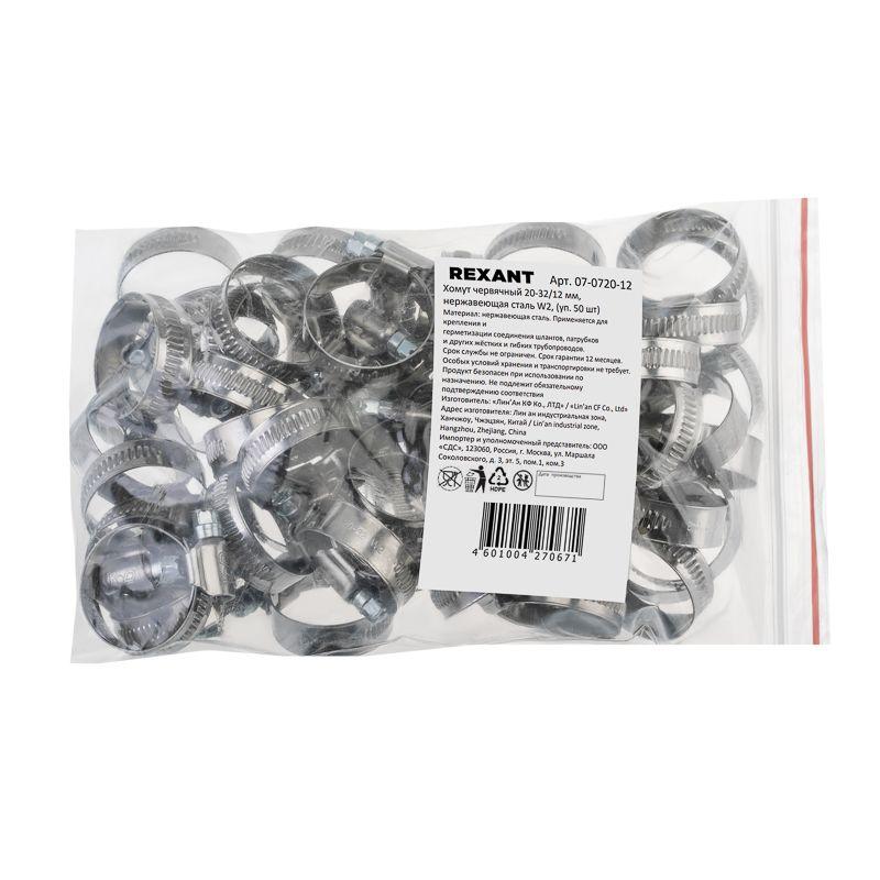 Хомут червячный 20-32/12-0.8мм нержавеющая сталь W2 (уп.50шт) Rexant 07-0720-12