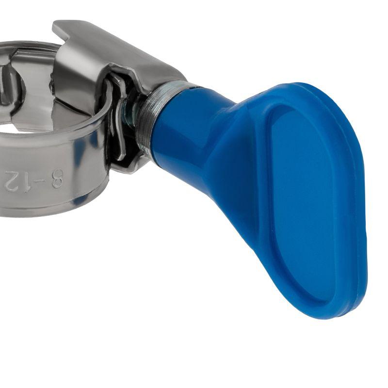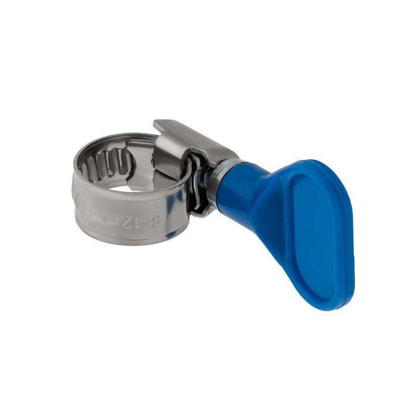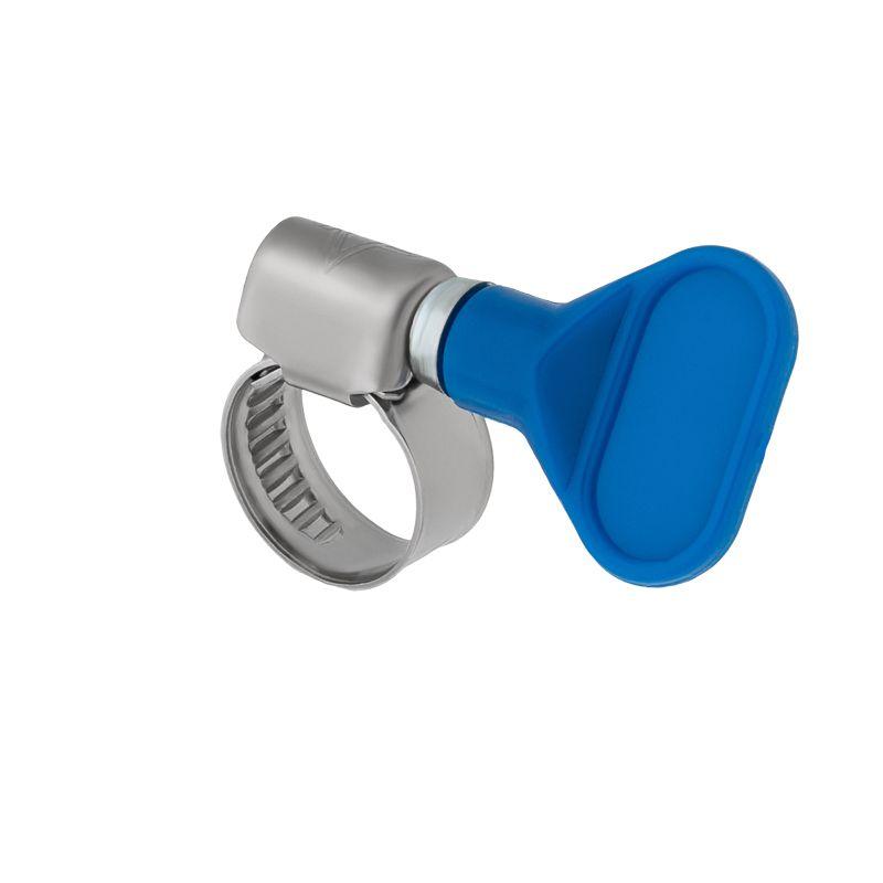 Ключ на данном хомуте позволяет обойтись без вспомогательного инструмента. Такой хомут несложно затянуть или раскрутить вручную, поэтому в быту этот крепеж находит применение там, где его требуется часто снимать и ставить вновь.