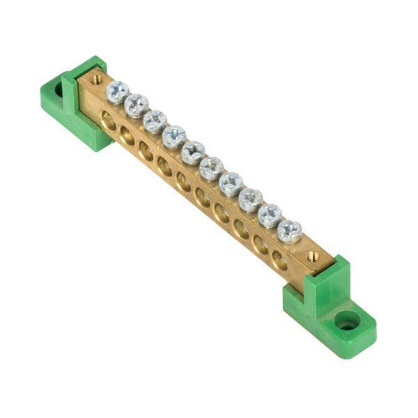 Шина нулевая PE 8х12 10 отвер. латунь с контактной пластиной 2 зел. угловых изолятора PROxima EKF sn0-125-10-2-pe