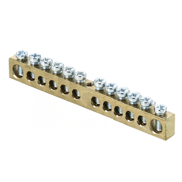Шины предназначены для присоединения нулевых проводников (шина N) и заземления (шина PE). Шины выполнены из латуни и никелированной латуни. Нулевая шина устанавливается на изоляторе.